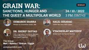 United World International has organized a webinar titled “The Grain War: Sanctions, Hunger and the Quest for a Multipolar World” on October 24. The webinar hosted 3 speakers: Vyacheslav Matuzov,